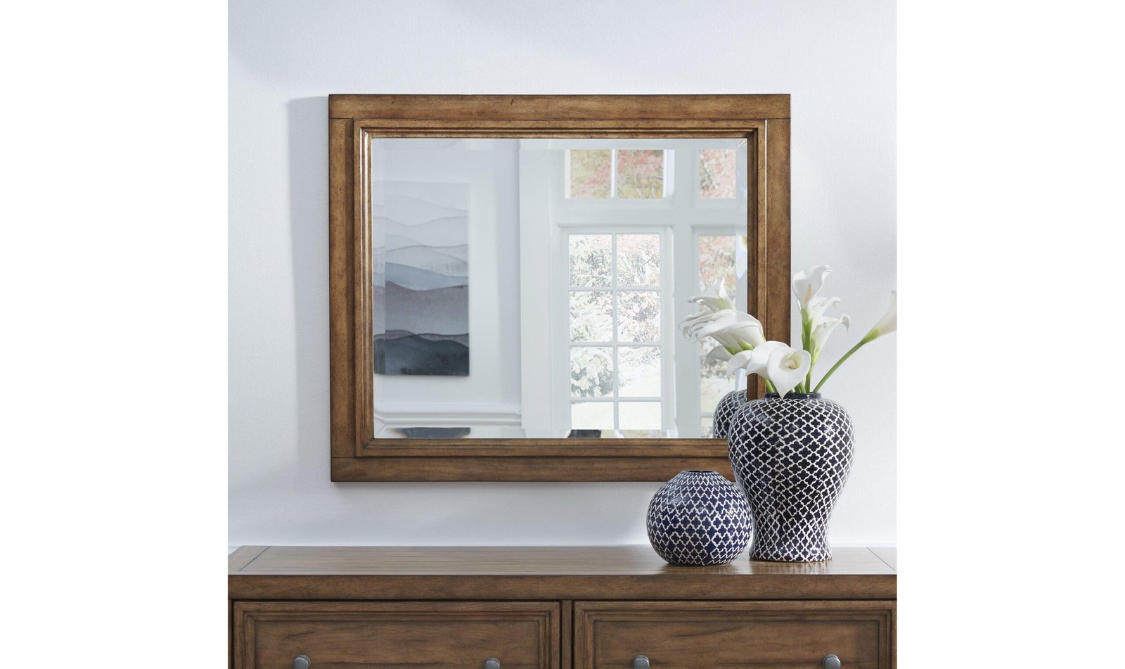 Hardwood and engineered wood offers incredible structural strength and durability Veneer provides the beauty and feel of natural woodgrainHigh-quality beveled mirror provides a sophisticated look Mirror mounting brackets easily attach to the dresser or the wall for added security